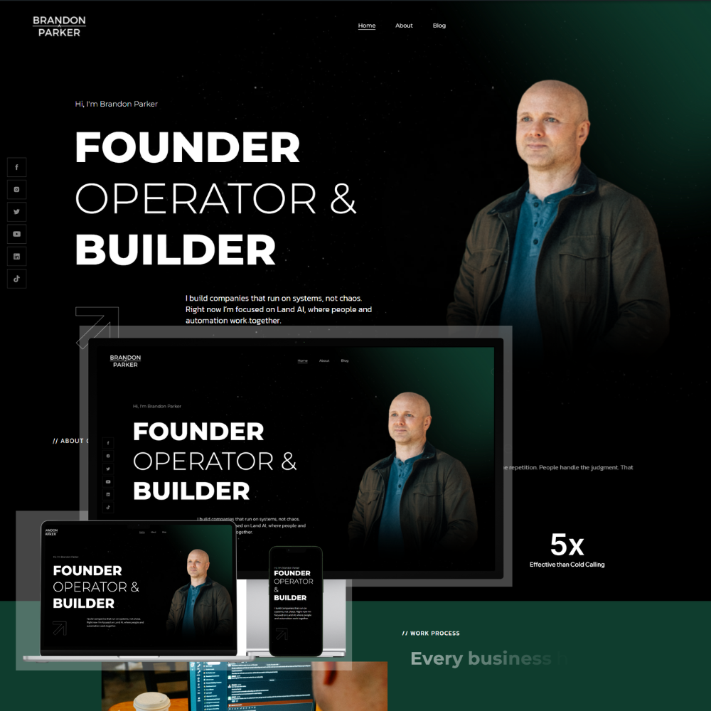 Brandon Parker Official Website is a personal brand website built to establish Brandon Parker as a founder, operator, and systems-focused entrepreneur. The website highlights his philosophy of building businesses powered by structured systems, automation, and human decision-making.