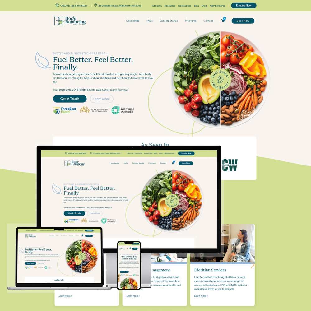 The website for Body Balancing Nutrition was created to promote professional dietitian and nutrition services focused on weight management, hormone balance, and overall health improvement. The platform highlights personalised nutrition programs, expert consultations, and evidence-based strategies designed to help clients achieve sustainable health results. The goal of the website is to educate visitors, showcase services clearly, and convert potential clients into booked consultations.